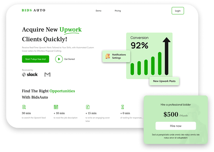 Auto Bid generates personalized, high-quality cover letters in seconds. The AI drafts responses based on job details, ensuring each submission is compelling and relevant to the client’s needs.